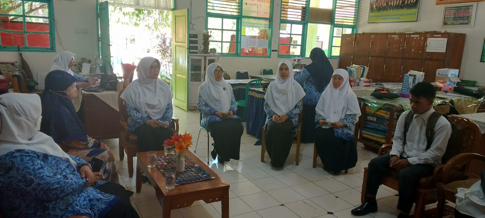 Padang, Humas – Kepala madrasah menyambut kedatangan guru muda dari UIN Imam Bonjol Padang tahun pelajaran 2022/2023 pada hari senin tanggal 18 Juli 2022 pukul 10.00 WIB bertempat di ruang guru MTsN 3 Kota Padang.