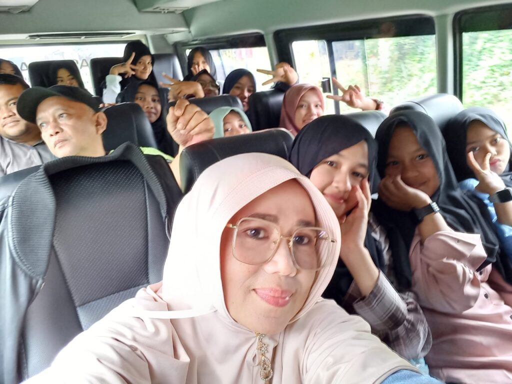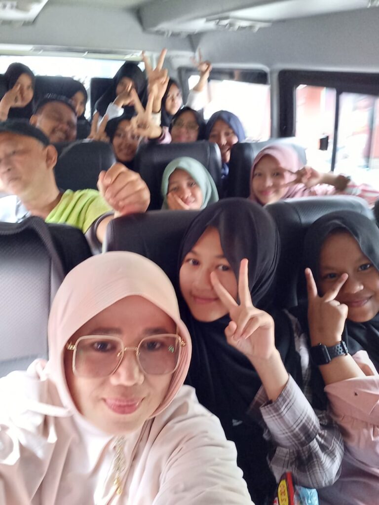 Padang, Humas – Didampingi Kepala Urusan Tata Usaha, Desi Arisanti, Wakil Kesiswaan, Ramli, serta pembina OSIM, Elmarika dan guru pelatih tari Feni Silvia Wahyuni, Nurrahmania Hasanah, serta beberapa guru dan tenaga kependidikan MTsN 3 Kota Padang, Kamis pagi (15/12) mengikuti wisata edukasi sebagai reward dari juara yang telah ditorehkan oleh Tim Tari Pasambahan dan Tim Pawai MTQ Tingkat Kota Padang.