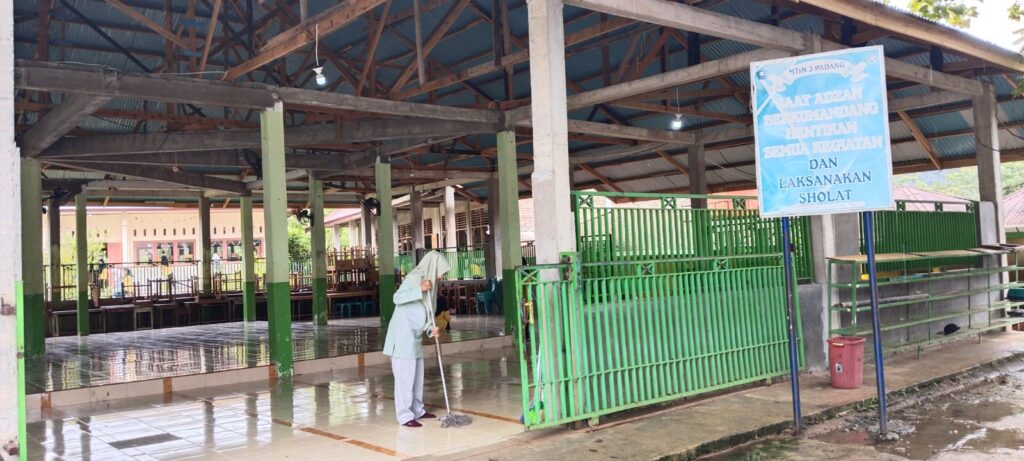 Padang, Humas – Dalam menyambut datangnya bulan suci Ramadhan 1445H, warga Madrasah Tsanawiyah Negeri (MTsN) 3 Kota Padang menggelar aksi taharah masjid dan lingkungan madrasah. Aksi tersebut diadakan sebagai bentuk kesiapan spiritual dan kebersihan menjelang bulan penuh berkah ini, Sabtu (09/03). Antusiasme warga madrasah sangat terasa, menunjukkan semangat kebersamaan dalam menjalankan ibadah dan meraih berkah di bulan yang penuh kebaikan.