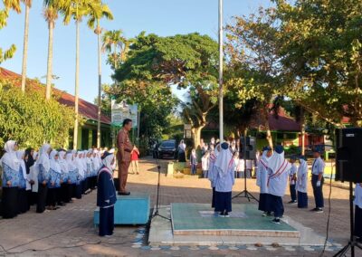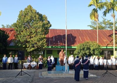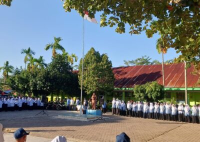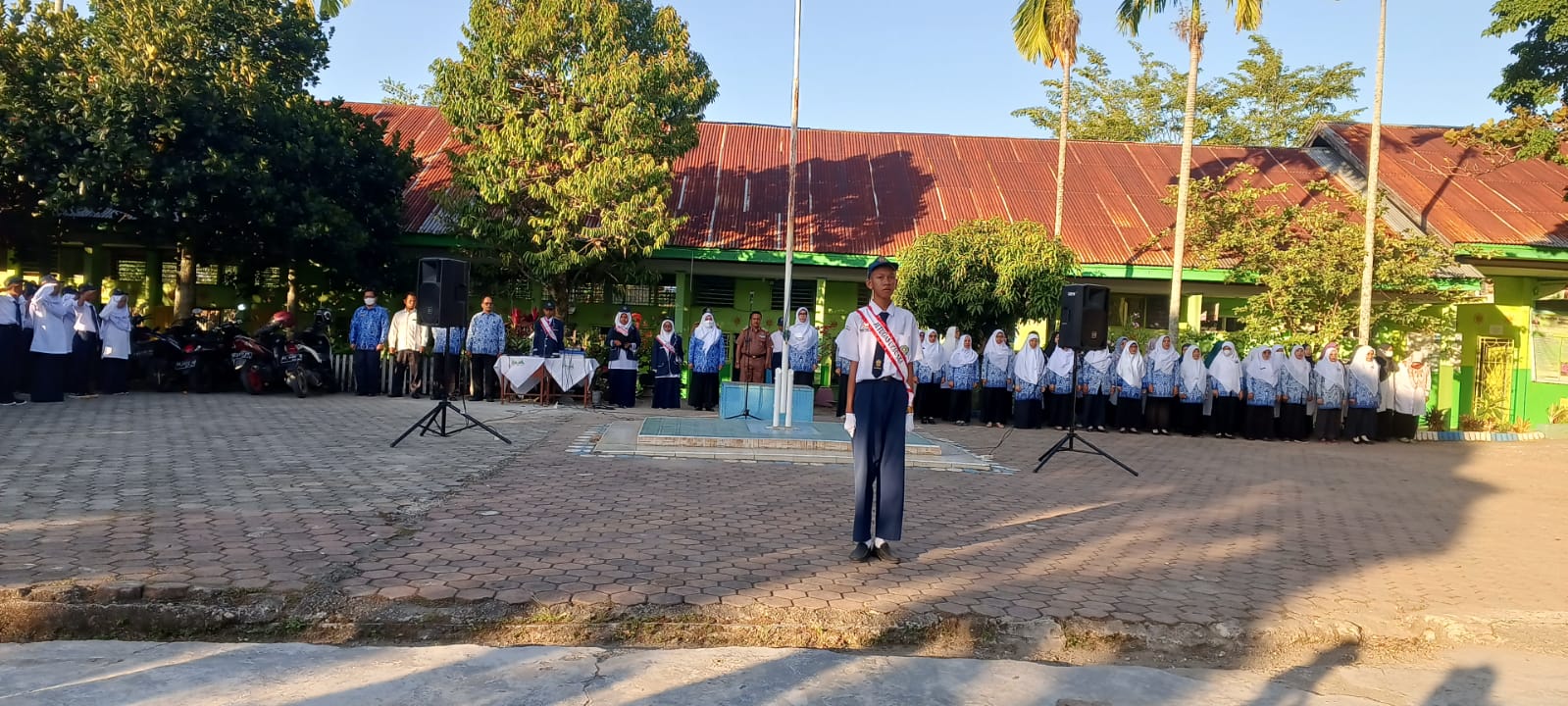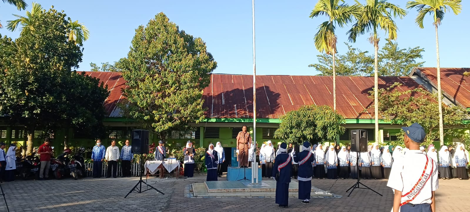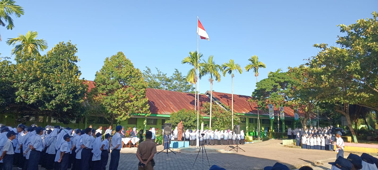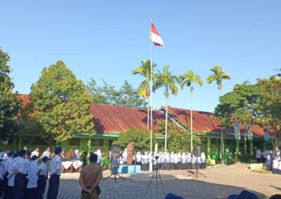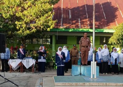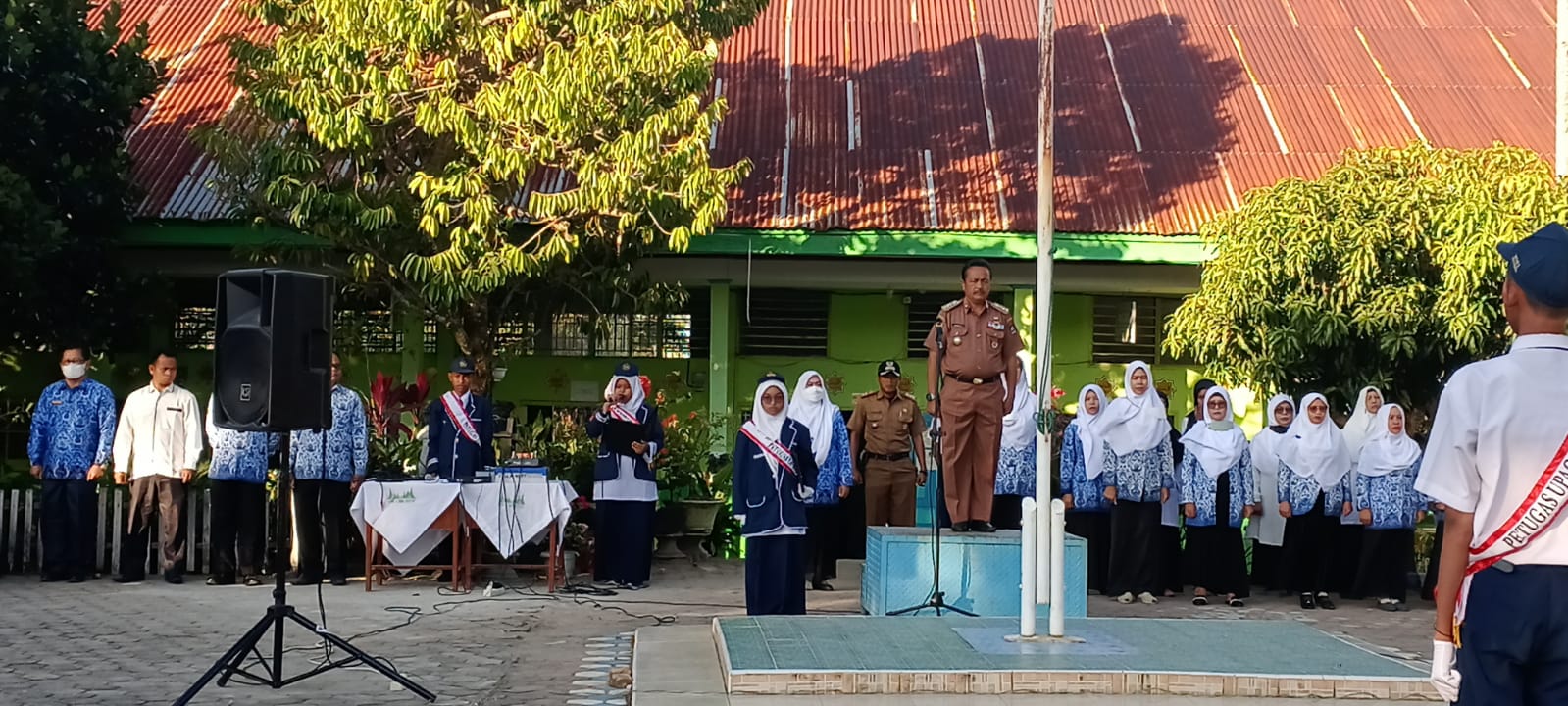 Dalam arahannya beliau menyampaikan ucapan terima kasih telah mengundang Camat dalam pelaksanaan upacara kali ini, dan juga ucapan terima kasih kepada pelaksana dan peserta upacara yang sudah berlatih untuk pelaksanaan upacara sehingga berjalan lancar dalam pelaksanaannya.