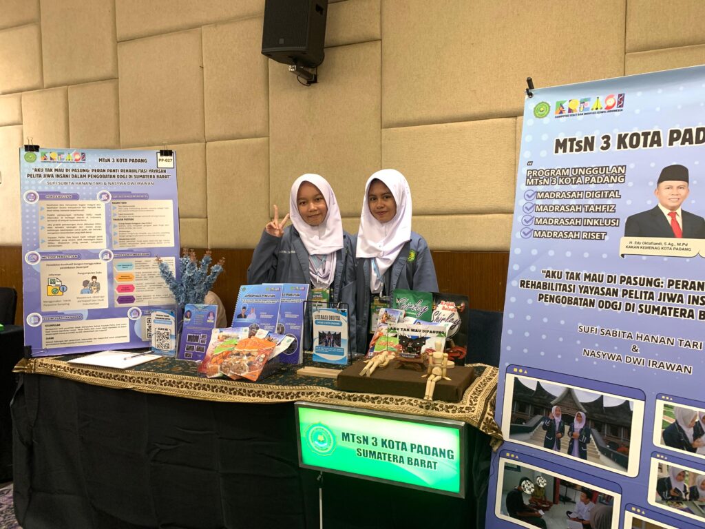 Padang, Humas – Empat tim riset terbaik MTsN 3 Kota Padang berkompetisi di ajang bergengsi Kompetisi Riset dan Inovasi (Kreasi) Tahun 2025 Tingkat Nasional yang digelar di Hotel Palm Royal, Cengkareng, Jakarta. Kompetisi yang berlangsung pada 4–6 November 2025 ini mempertemukan pelajar madrasah dan sekolah menengah dari seluruh Indonesia untuk menampilkan karya riset dan inovasi terbaik mereka. Rabu (5/11/2025) menjadi momentum penting bagi tim MTsN 3 Kota Padang saat seluruh anggota tim tampil dengan penuh percaya diri di hadapan dewan juri.
