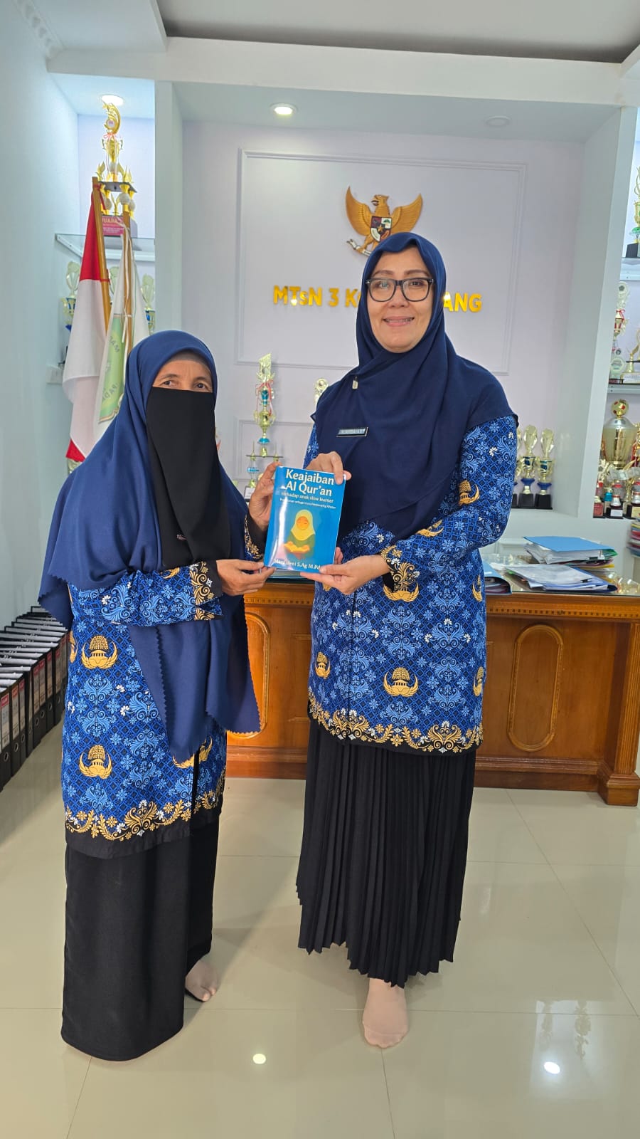 Padang, Humas – Kepala MTsN 3 Kota Padang secara resmi menerima sebuah buku berjudul “Keajaiban Al-Qur’an terhadap Anak Slow Learner” hasil karya guru Bimbingan Konseling (BK), Mardaleni. Penyerahan buku ini menjadi momentum penting bagi madrasah dalam menguatkan komitmen pendidikan yang berpadu dengan nilai-nilai Al-Qur’an, khususnya dalam pelayanan kepada peserta didik berkebutuhan khusus. Buku tersebut diharapkan menjadi referensi inspiratif bagi para guru, orang tua, dan siswa dalam memaknai peran Al-Qur’an sebagai pedoman hidup sekaligus sumber terapi jiwa.