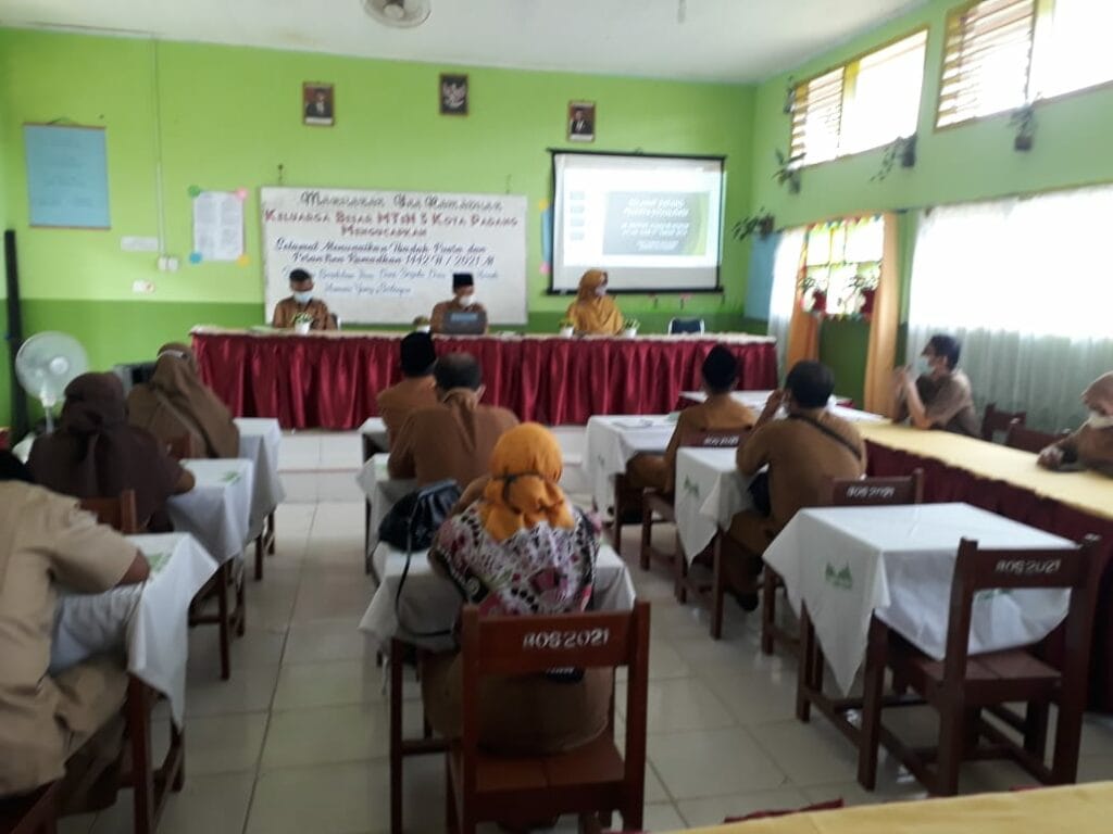 Padang (Humas) – Kasubag TU Kankemenag Kota Padang buka sosialisasi SE Menteri Agama RI No. 04, 06 dan 07 Tahun 2021 Tentang Penanganan Covid-19 Menyambut Idul Fitri 1442 H, dalam pelaksanaan sosialisasi khusus Kec. Koto Tangah bertempat di MTsN 3 Kota Padang, dimana para peserta terdiri dari : Kasubag TU (Narasumber), Kepala MAN 3 Kota Padang, Kepala MTsN 1 Kota Padang beserta Kaur, Kepala MIN 1 Kota Padang, Kepala Raudhatul Athfal, Kepala KUA, Penyuluh, Penghulu dan Pengawas Binaan di Kecamatan Koto Tangah. (MN. Foto : SS)