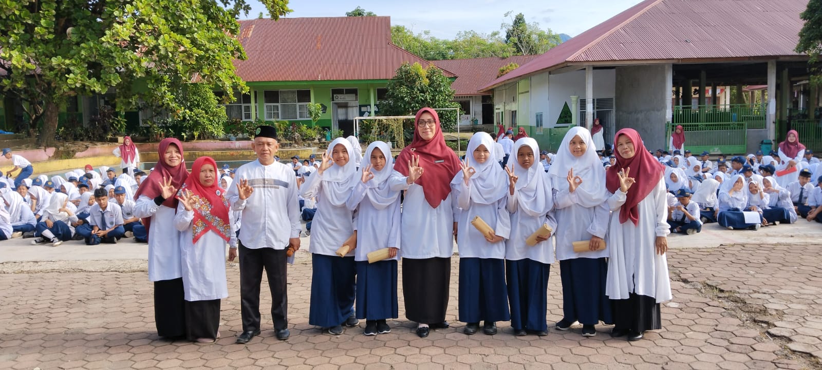 Acara penyerahan penghargaan ini diakhiri dengan sesi foto bersama, yang menjadi momen spesial bagi para pemenang dan kepala madrasah, Nurhidayati. Melalui kegiatan seperti ini, MTsN 3 Kota Padang berkomitmen untuk terus mendukung perkembangan akademik dan karakter siswa melalui berbagai lomba dan kegiatan yang edukatif serta bernilai religius. (AA. Foto: AA)