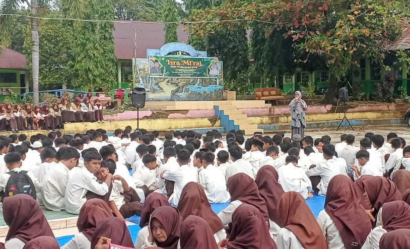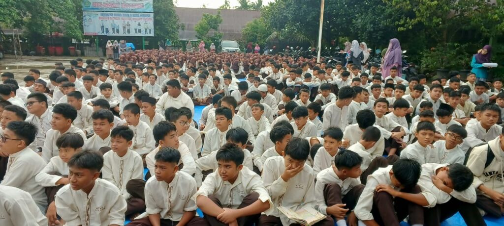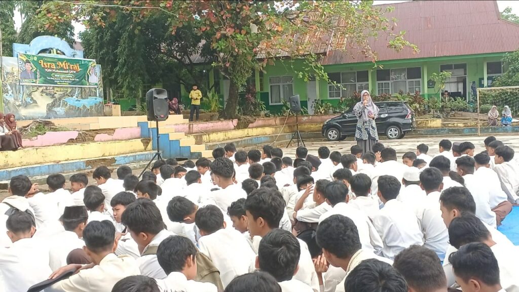 Padang, Humas – Kepala MTsN 3 Kota Padang, Nurhidayati, memberikan pengarahan kepada siswa yang mengikuti kegiatan Muhadharah pada Jumat (7/2). Dalam kesempatan tersebut, beliau menyampaikan pentingnya menerapkan program 7 Kebiasaan Hebat Anak Indonesia sebagai bagian dari pembentukan karakter dan disiplin siswa. Program ini mencakup kebiasaan disiplin, rajin beribadah, makan sehat, olahraga, gemar belajar, bermasyarakat, serta tidur lebih awal.