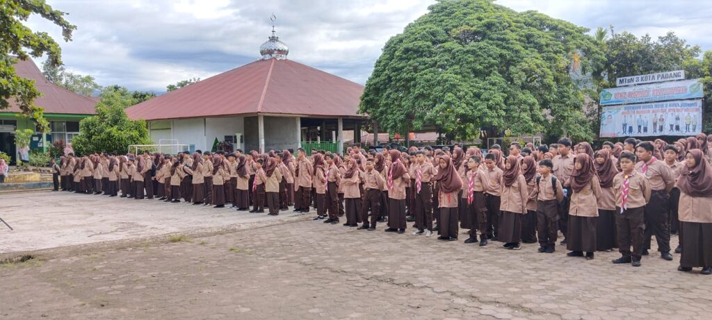 Padang, Humas – Kepala MTsN 3 Kota Padang, Nurhidayati, memberikan arahan kepada seluruh siswa-siswi dalam acara penyerahan hasil Penilaian Akhir Semester (PAS) dan (ASAS) ganjil tahun ajaran 2024/2025. Acara ini berlangsung pada Kamis pagi pukul 07.30 WIB di halaman madrasah dengan dihadiri oleh guru, staf, orang tua, dan seluruh siswa. Dalam arahannya, Nurhidayati menekankan pentingnya belajar dengan tekun dan menjaga disiplin untuk meraih hasil yang lebih baik di semester mendatang.