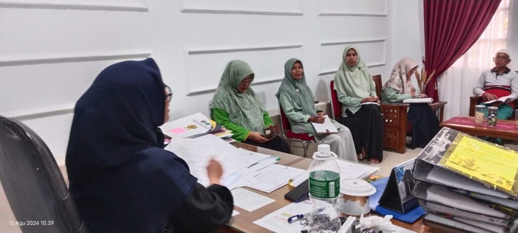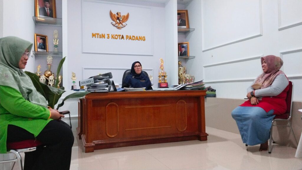 Padang, Humas – Pada Kamis, 15 Agustus 2024, Kepala MTsN 3 Kota Padang, Nurhidayati, memimpin rapat evaluasi terkait implementasi kelas digital di madrasah tersebut. Rapat yang berlangsung di ruang Kepala Madrasah ini dimulai pada pukul 10.00 WIB, dengan dihadiri oleh Kaur Tata Usaha, Desi Arisanti, Waka Kurikulum, guru informatika, serta para wali kelas digital. Evaluasi ini dilakukan untuk meninjau kemajuan program kelas digital yang telah berjalan dan mengidentifikasi tantangan yang perlu diatasi.