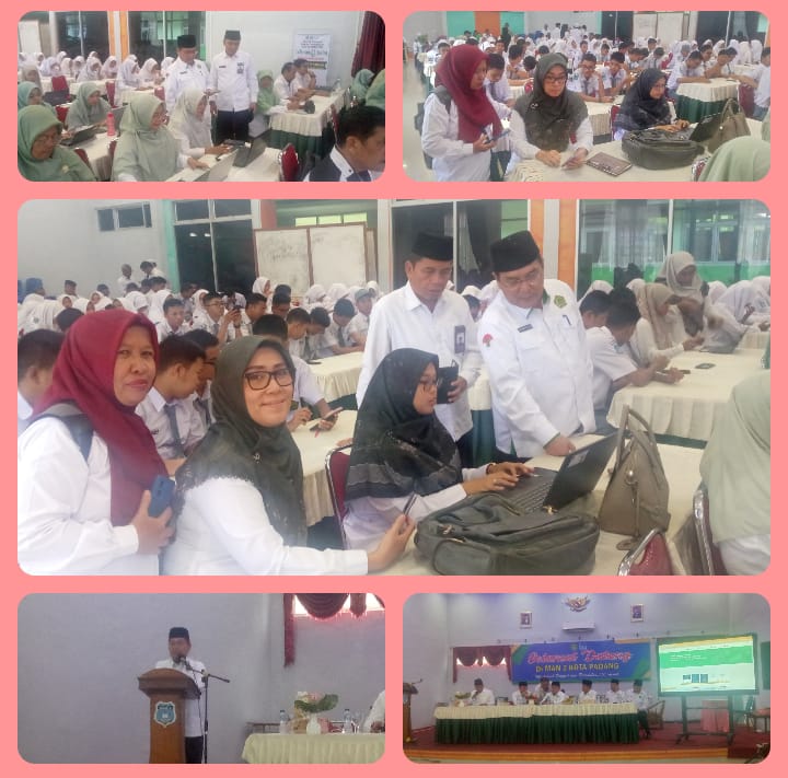 Padang, Humas – Kepala MTsN 3 Kota Padang, Nurhidayati, didampingi Kepala Urusan Tata Usaha, Desi Arisanti, dan Kepala Perpustakaan, Dewi Suryani, mengikuti uji coba Proyek Smart Madrasah Library yang digelar pada Senin, 7 Oktober 2024. Acara ini berlangsung di Aula MAN 2 Padang dan dibuka langsung oleh Kepala Kantor Wilayah Kementerian Agama Provinsi Sumatera Barat, H. Mahyudin. Program ini bertujuan untuk menghadirkan perpustakaan digital berbasis teknologi yang mendukung pembelajaran di madrasah-madrasah di Sumatera Barat.