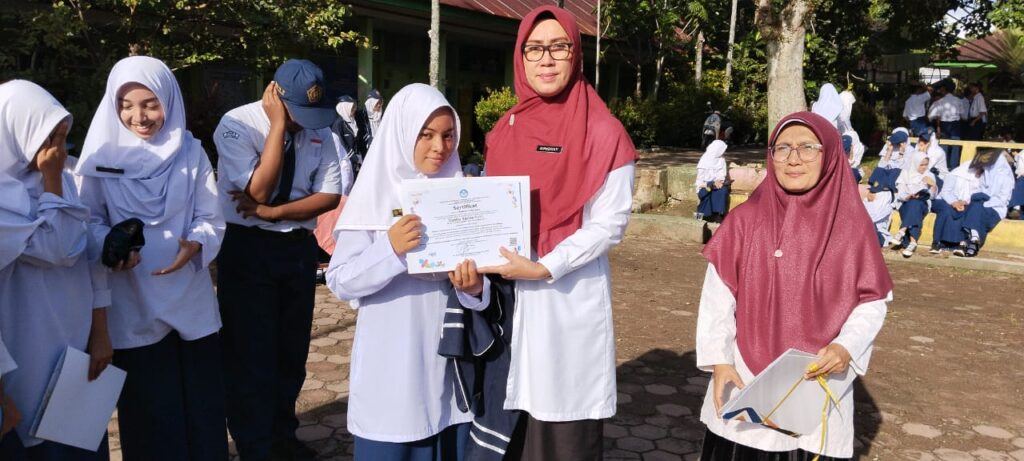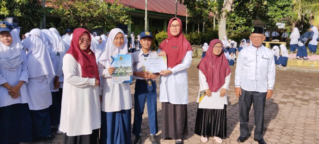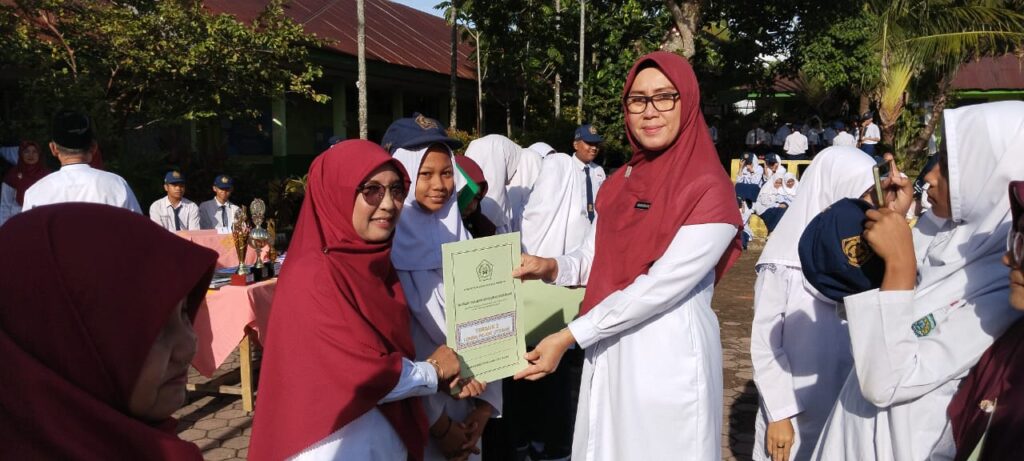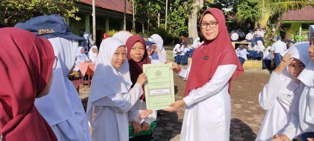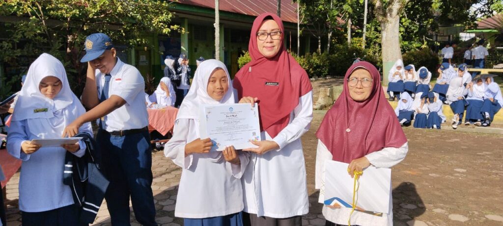 Padang, Humas – Kepala MTsN 3 Kota Padang, Nurhidayati, menyerahkan piagam penghargaan dan medali kepada siswa-siswi berprestasi pada Semester Ganjil Tahun Pelajaran 2024/2025 dalam upacara penghargaan yang berlangsung di halaman madrasah, pagi ini. Acara tersebut diadakan sebagai bentuk apresiasi atas prestasi gemilang siswa di tingkat kota, provinsi, hingga nasional. Kepala madrasah menyampaikan kebanggaannya terhadap semangat siswa-siswi yang berhasil mengharumkan nama madrasah dalam berbagai kompetisi, baik akademik maupun non-akademik.
