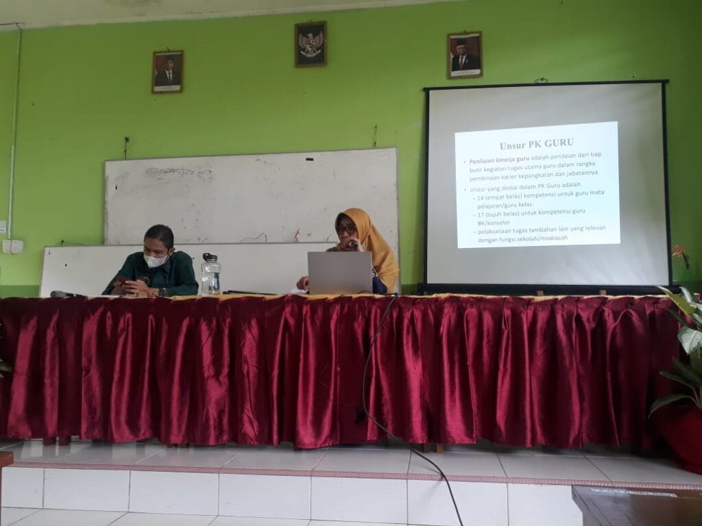 Padang, Humas – Dalam rangka sosialisasi dan penyamaan persepsi tentang PKG, kepala MTsN 3 Kota Padang Nurhidayati, ST membuka pertemuan dengan tim PKG. Penilaian kenerja guru adalah penilaian dari tiap butir kegiatan tugas utama guru dalam rangka pembinaan karir kepangkatan dan jabatan guru. Kegiatan ini dihadiri oleh tim PKG yang berjumlah 13 orang guru diaula ruang kelas IX-2. Dalam Permenpan No. 16/2019 memberi ruang dan mendukung peran guru sebagai pelaksana tugas serta peran guru agar menjadi guru profesional.
