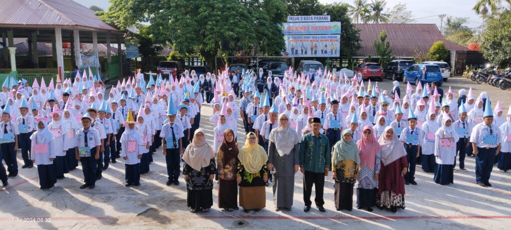 Padang, Humas – Kepala Madrasah, Nurhidayati, didampingi oleh pengawas manajerial Nayusminar Nasrun, secara resmi membuka kegiatan Masa Ta’aruf Siswa Madrasah (MATSAMA) untuk siswa baru MTsN 3 Kota Padang Tahun Pelajaran 2024/2025 pada hari Rabu, 17 Juli 2024 pukul 08.00 WIB. Pembukaan berlangsung di lapangan MTsN 3 Kota Padang dengan suasana penuh semangat dan antusiasme dari para siswa baru yang hadir.