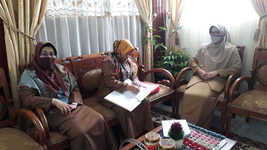 Padang – Kepala MTsN 3 Kota Padang Nurhidayati, S.T menerima Monev persiapan tatap muka sesuai dengan SKB 4 menteri tentang pembelajaran tatap muka TA 2020/2021 di ruangan kepala MTsN 3 Kota Padang. (SS. Foto : SS)