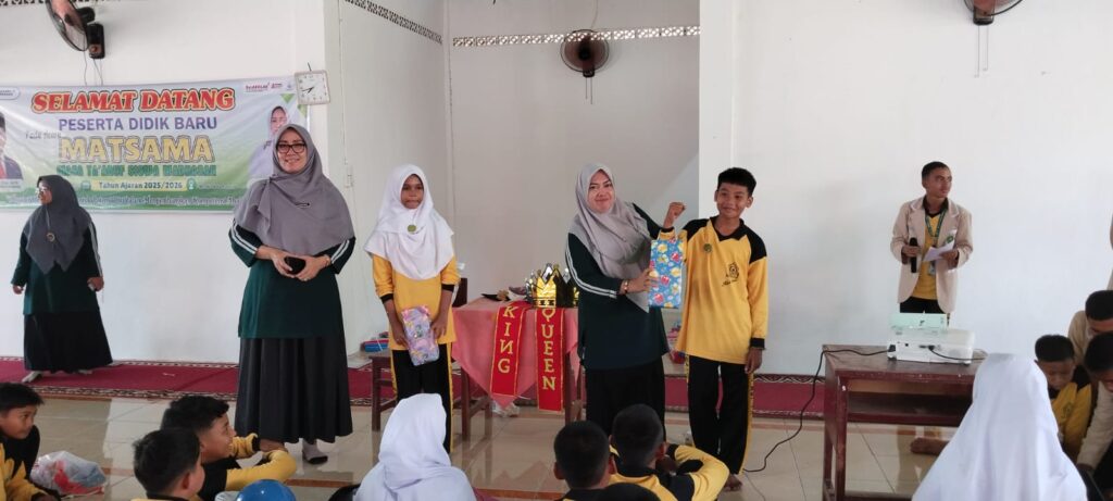 Sebagai bagian dari penutupan, panitia MATSAMA memberikan penghargaan khusus kepada dua peserta paling aktif selama kegiatan berlangsung. Gelar King MATSAMA dianugerahkan kepada Abi, sementara gelar Queen MATSAMA diraih oleh Jihan. Keduanya terpilih karena menunjukkan kedisiplinan, partisipasi aktif, dan sikap positif yang menjadi teladan bagi teman-teman lainnya. Penobatan ini disambut riuh tepuk tangan seluruh peserta dan diharapkan menjadi inspirasi bagi siswa lain untuk terus berprestasi dan aktif dalam kegiatan madrasah. (AA. Foto: AA)