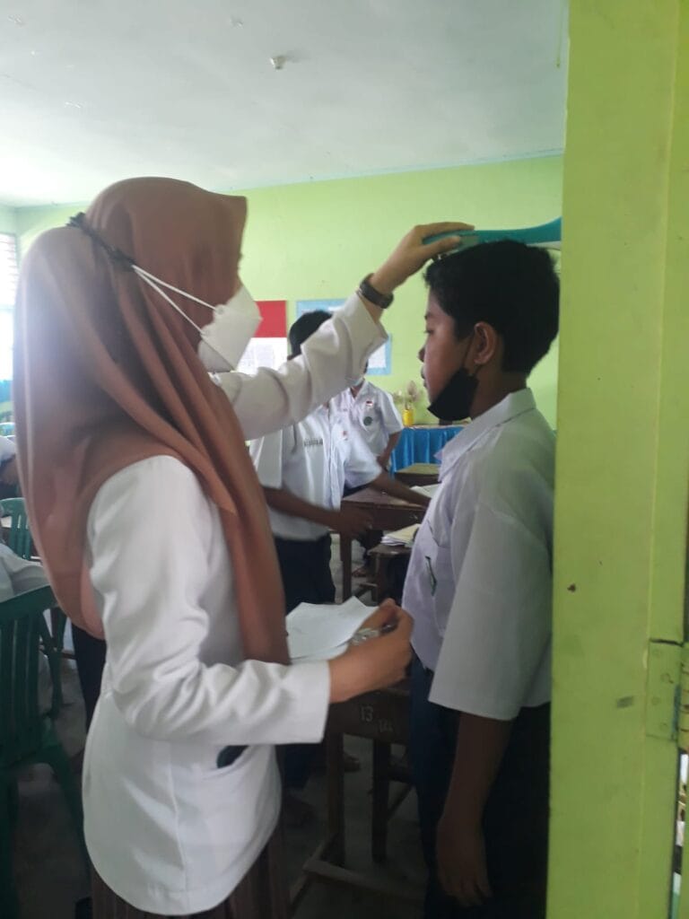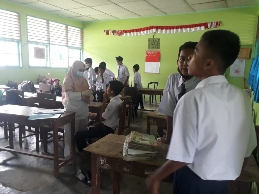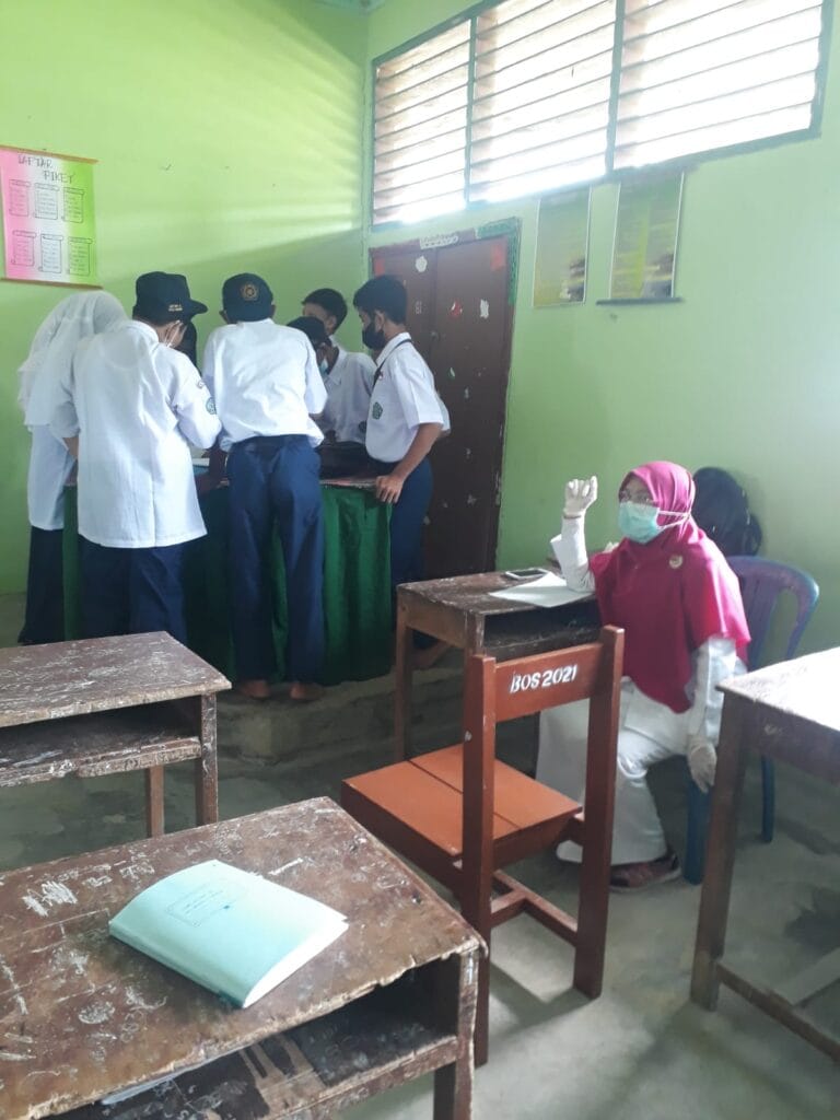 Padang, Humas – Kegiatan screening siswa kelas VII MTsN 3 Kota Padang oleh Tim Kesehatan Puskesmas Koto Panjang Ikur Koto Kota Padang. Dalam kegiatan screening ini dilakukan pemeriksaan mata, teliga, tinggi dan berat badan serta riwayat penyakit kepada para siswa. (SS. Foto : SS)