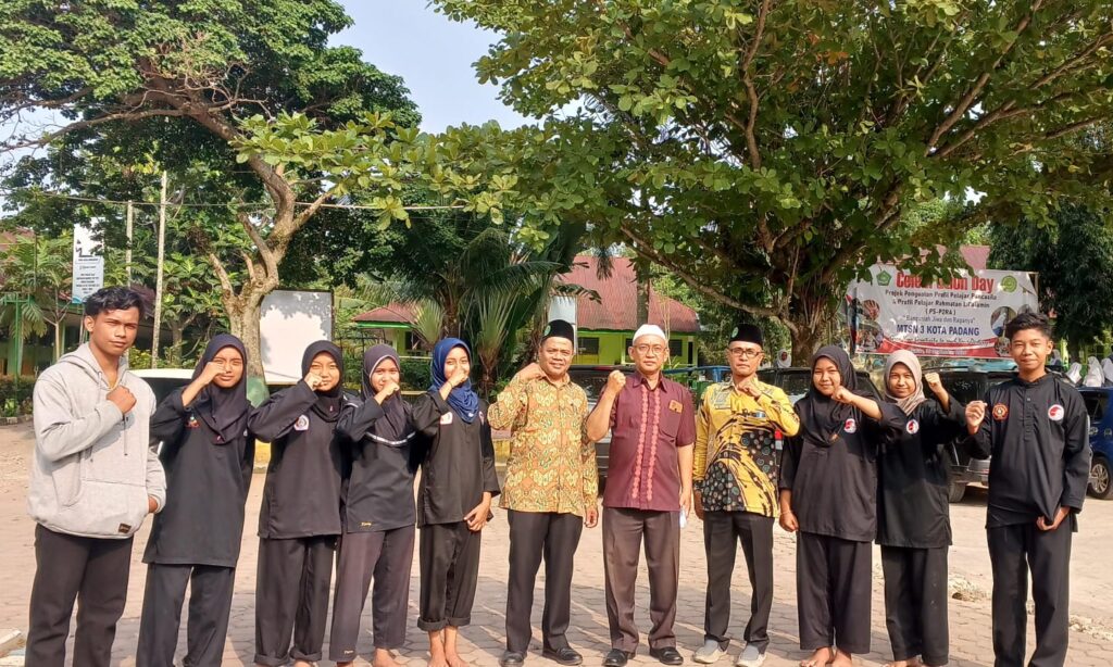 Padang, Humas - Rabu (11/10) Kontingen Silat MTsN 3 Kota Padang dilepas oleh kepala madrasah yang diwakili oleh waka siswa Ramli dan didampingi Pembina silat Syafrimen Sahir dan waka humas Ahdi Ahmad. Tim Kontingen silat MTsN 3 Kota Padang yang berkekuatan tujuh pesilat akan bertanding di Kejuaraan Silat Sumbar-Riau-Jambi yang diadakan di UIN Bukitinggi yang akan berlangsung dari tanggal 12 s/d 15 Oktober 2023.