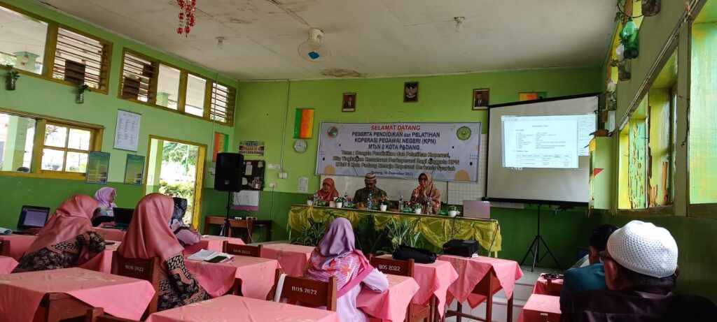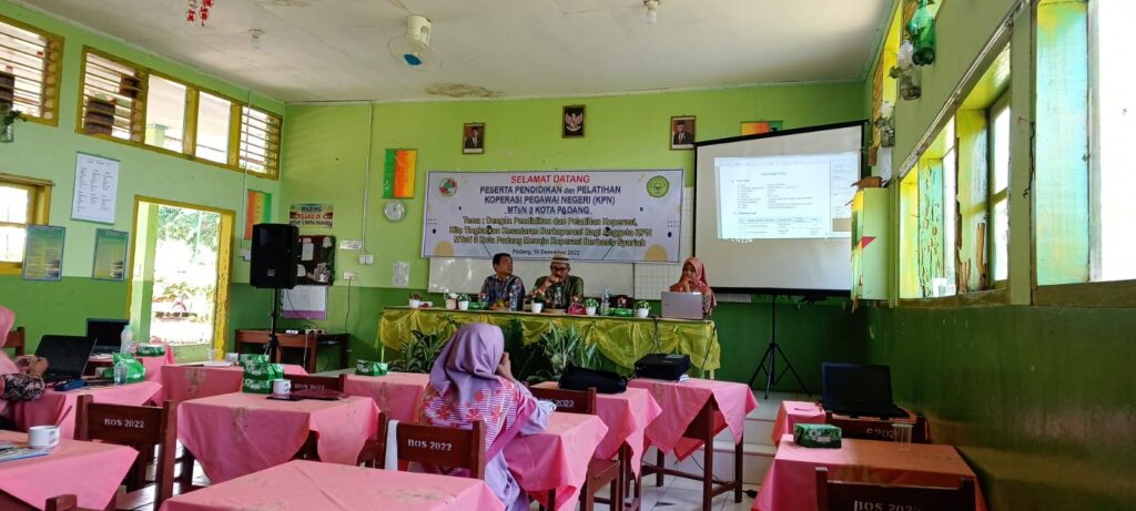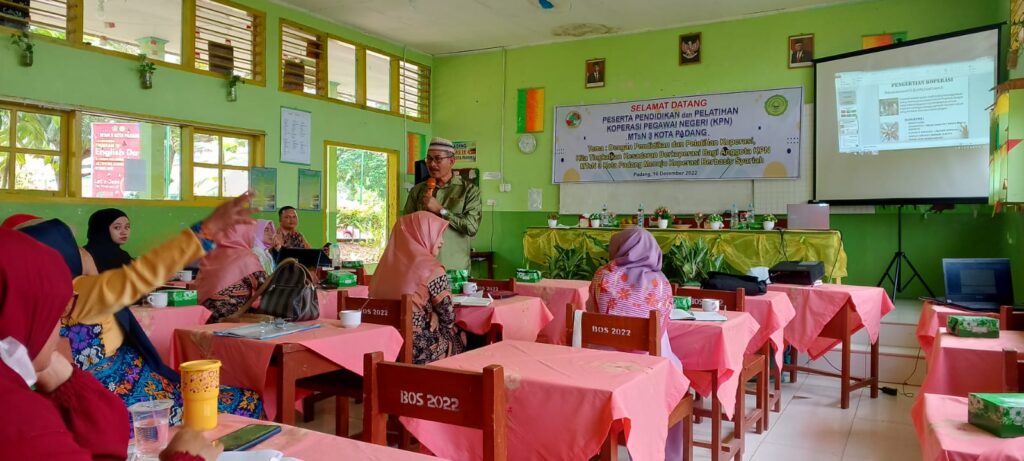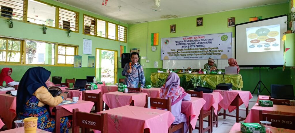 Padang, Humas – Koperasi Pegawai Negeri (KPN) MTsN 3 Kota Padang mengadakan Pendidikan dan Pelatihan Koperasi Berbasis Syariah bertempat di Aula MTsN 3 Kota Padang, Jumat (16/12). Kegiatan dibuka langsung oleh kepala madrasah Nurhidayati.