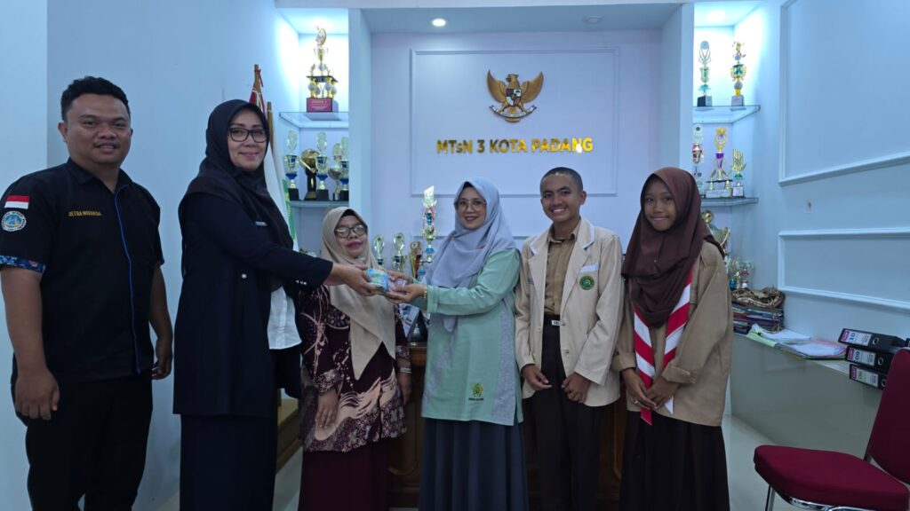 Padang, Humas – Kamis, 30 Oktober 2025, suasana hangat terasa di ruang pertemuan Kepala MTsN 3 Kota Padang saat pembina dan pengurus OSIM menyerahkan bantuan kepada Tim Tsantipa Researcher and Voice, yang akan berlaga di Final Kompetisi Riset dan Inovasi Siswa Indonesia (KREASI) 2025 di Royal Palm Hotel & Conference Center, Cengkareng, Jakarta Barat, pada 4–6 November 2025 mendatang.