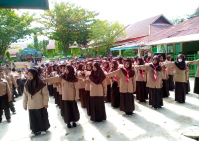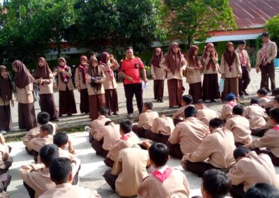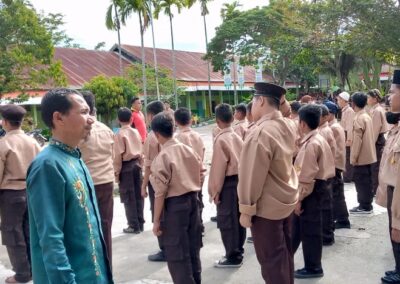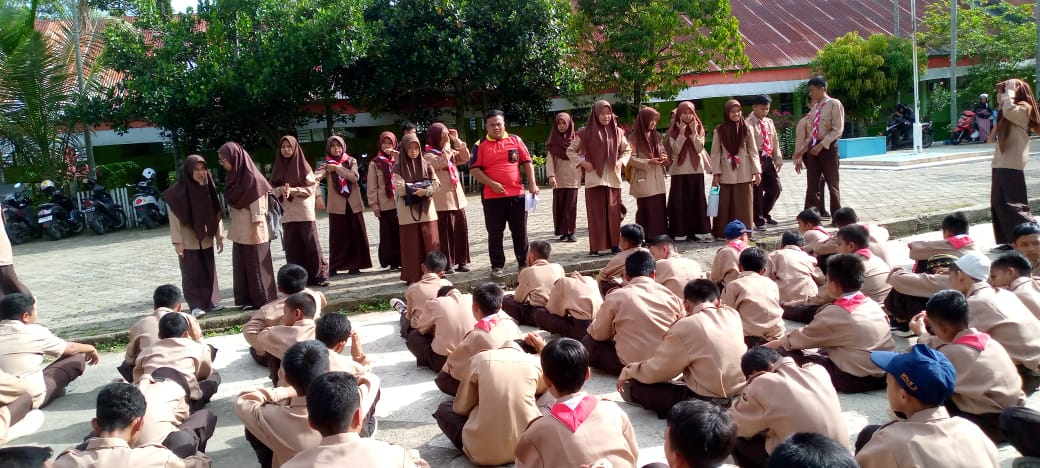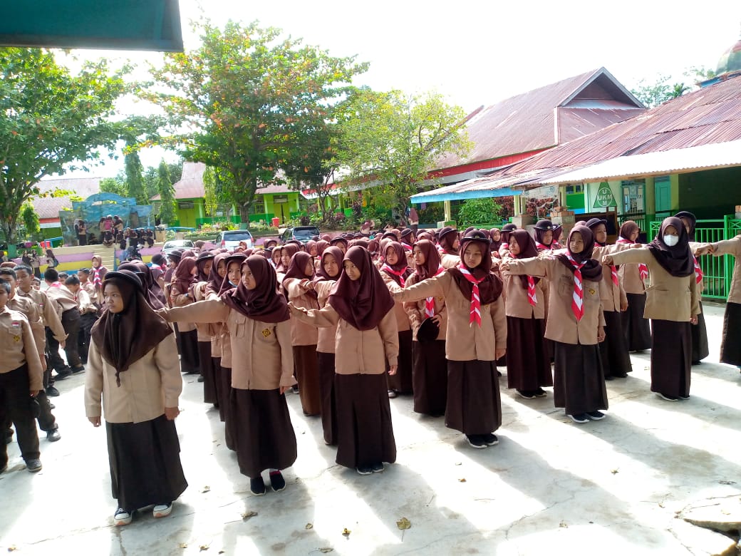 Para siswa MTsN 3 Kota Padang antusias dalam latihan pramuka. Para pembina dan siswa bersungguh-sungguh melakukan latihan dengan serius.