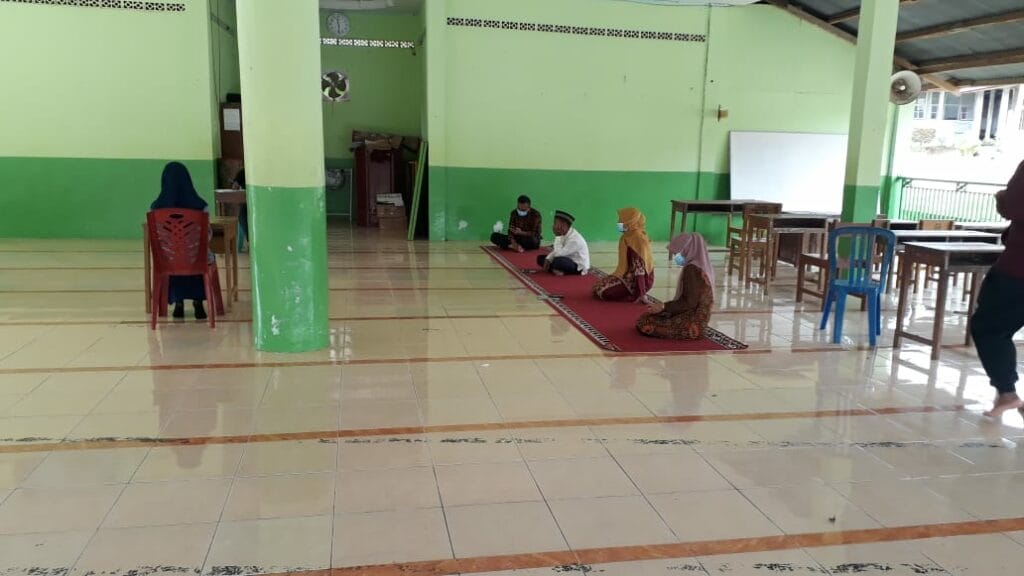 Padang – Kepala MTsN 3 Kota Padang memberikan arahan pada kegiatan lomba tahfiz pada classmeeting semester 1 yang tertunda dimasjid Nurus Sakinah MTsN 3 Kota padang yang dihadiri oleh kaur TU, wakil kepala dan panitia pelaksana lomba. (SS. Foto : SS)