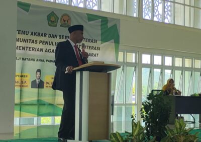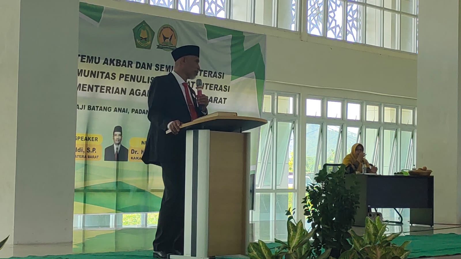Kepala Madrasah menyampaikan harapan yang sangat besar kepada seluruh alumni KPPL dari MTsN 3 Kota Padang, hendaknya terus melakukan inovasi untuk meningkatkan minat dan kecintaan peserta didik dan juga seluruh warga madrasah terhadap kegitan literasi tersebut. (AA. Foto : AA)