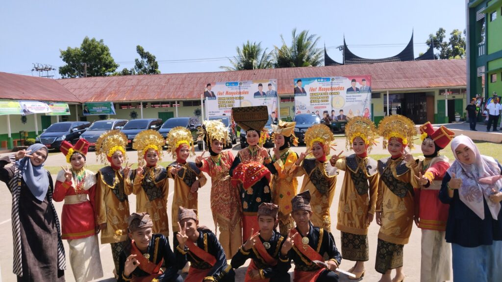 Padang, Humas – Tari Pasambahan MTsN 3 Kota Padang tampil gemilang dan spektakuler pada acara pembukaan Kompetensi Sains Madrasah (KSM) tingkat Sumatera Barat di MAN 2 Kota Padang, Jumat (04/08). Tari Pasambahan dibawah binaan Kepala Madrasah Nurhidayati diasuh dan dibimbing guru Seni Budaya Feni Silvia Wahyuni.