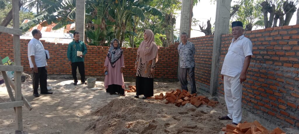 Setelah mengadakan pertemuan, komite dan kepala madrasah meninjau lokasi renovasi Masjid Nurus Sakinah dan pembangunan kelas baru di MTsN 3 Kota Padang. (AA: Foto :HK)