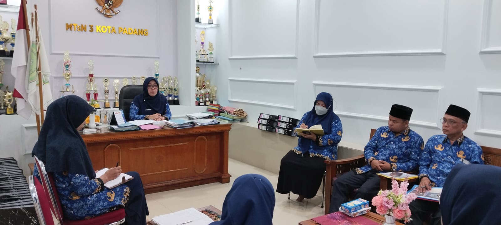 Padang, Humas – Kepala Madrasah Nurhidayati memimpin langsung rapat koordinasi kegiatan madrasah akhir tahun 2025 pada hari Senin, 17 November 2025. Rapat ini dihadiri oleh seluruh guru dan staf madrasah, membahas berbagai agenda penting menjelang penutupan tahun ajaran. Suasana rapat berlangsung hangat dengan semangat kebersamaan untuk memastikan setiap kegiatan berjalan lancar dan terarah.