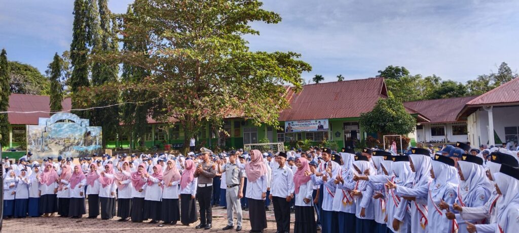Padang, Humas – MTsN 3 Kota Padang melaksanakan upacara bendera pada Senin, 15 September 2025 dengan suasana khidmat dan penuh makna. Pada kesempatan ini, pihak madrasah berkolaborasi dengan Direktorat Lalu Lintas (Dirlantas) Polda Sumbar. Bertindak selaku pembina upacara, Kanit 3 Subdit Kamsel IPTU Undra Putra, S.H., M.H., didampingi oleh Aipda Jamhur selaku Bamin Subdit Kamsel Dirlantas Polda Sumbar. Kehadiran aparat kepolisian ini menjadi momentum penting dalam menanamkan semangat nasionalisme sekaligus edukasi keselamatan berlalu lintas bagi para siswa.