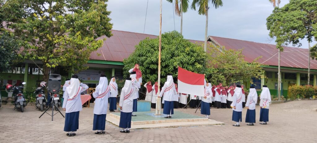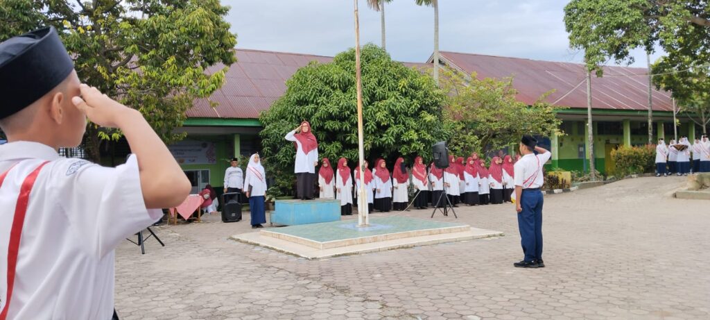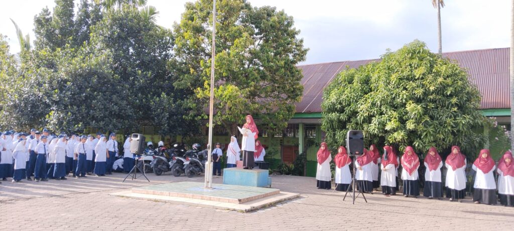 Padang, Humas – MTsN 3 Kota Padang menggelar upacara peringatan Hari Sumpah Pemuda ke-96 pada Senin, 28 Oktober 2024, yang berlangsung khidmat di lapangan madrasah. Upacara ini dihadiri oleh seluruh siswa, dewan guru, dan staf dengan Kepala Madrasah, Nurhidayati, bertindak sebagai pembina upacara. Momen ini menjadi kesempatan bagi siswa untuk menumbuhkan rasa cinta tanah air dan memperingati sejarah perjuangan pemuda Indonesia. Dalam suasana yang penuh semangat, seluruh peserta upacara tampak antusias mengikuti jalannya kegiatan.