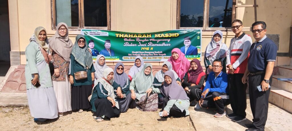 Padang, Humas – Dalam rangka menyambut bulan suci Ramadhan 1446 H, MTsN 3 Kota Padang turut serta dalam kegiatan thaharah atau bersih-bersih Masjid Raya Kampung Jambak pada Rabu (26/2). Kegiatan ini diikuti oleh para guru, dan staf madrasah sebagai bentuk kepedulian terhadap kebersihan tempat ibadah serta untuk menanamkan nilai-nilai gotong royong. Dengan penuh semangat, para guru membersihkan area dalam dan luar masjid, termasuk menyapu, mengepel lantai, serta merapikan karpet dan perlengkapan ibadah lainnya.