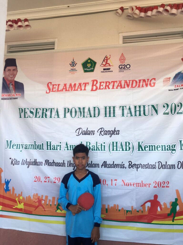 Padang, Humas – Kembali siswa MTsN 3 Kota Padang menorehkan prestasi demi prestasi, kali ini ada Nabil Al Rifat dari kelas VIII-3 meraih prestasi dalam ajang tenis meja POMAD III Tahun 2022.