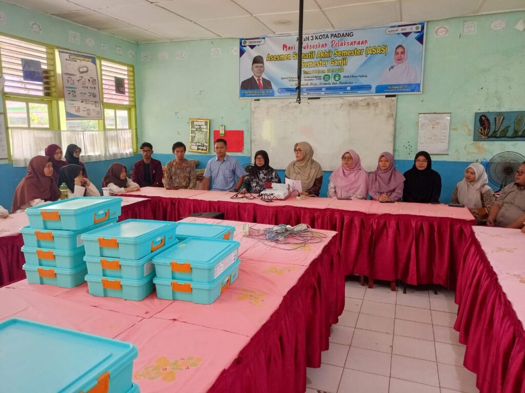 Padang, Humas — Kepala MTsN 3 Kota Padang, Nurhidayati, S.T. secara resmi membuka kegiatan kolaborasi dengan Universitas Islam Negeri (UIN) Imam Bonjol Padang yang berlangsung di Labor IPA MTsN 3 Kota Padang, Jumat (5/12). Kegiatan ini merupakan wujud penguatan sinergi antara madrasah dan perguruan tinggi dalam pengembangan sains dan teknologi, khususnya di bidang robotik. Dalam sambutannya, Kepala Madrasah menyampaikan apresiasi dan harapan besar agar program ini mampu meningkatkan wawasan dan keterampilan siswa di era digital.