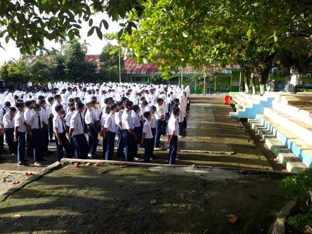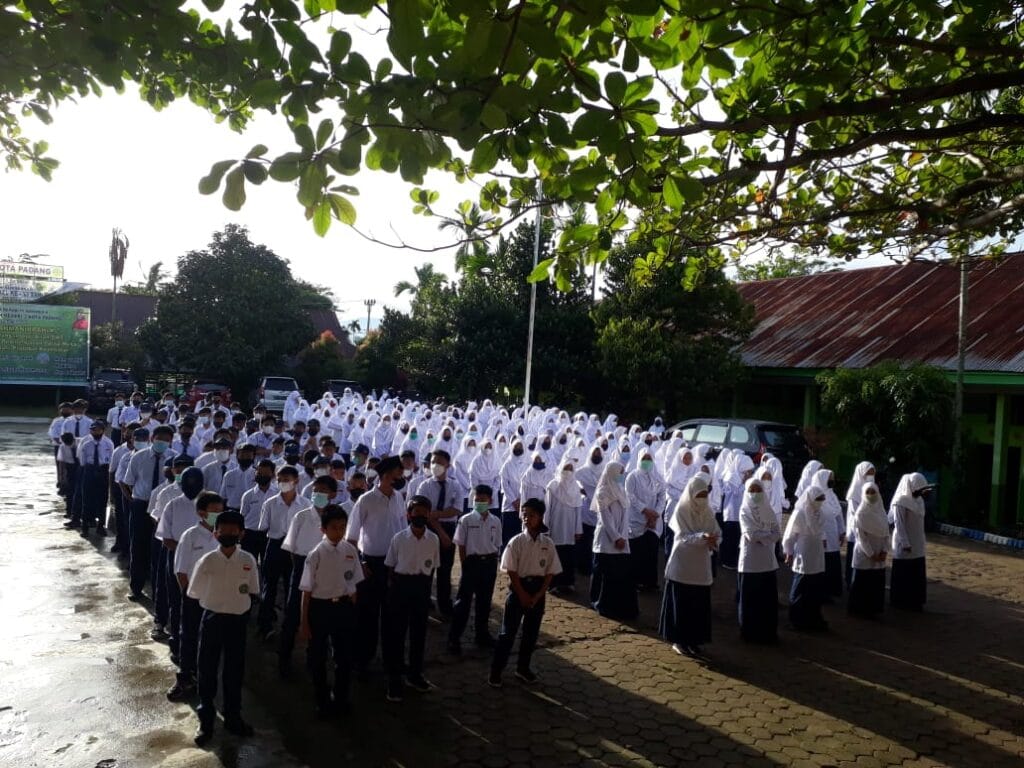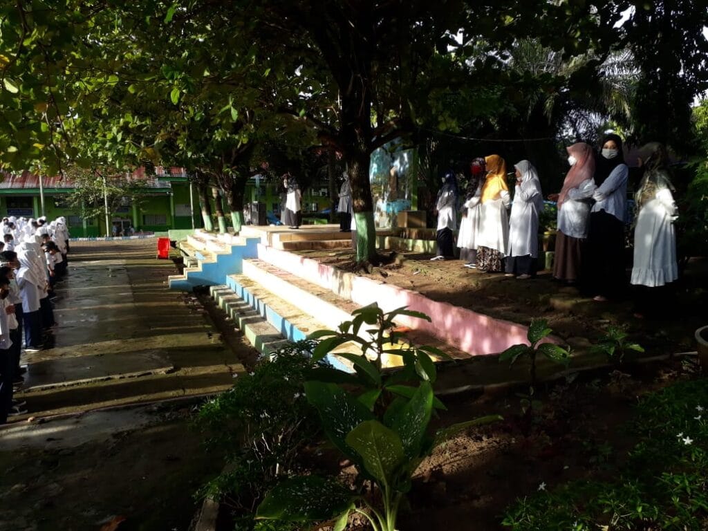 Padang, Humas – Dalam rangka untuk mengetatkan disiplin dalam pembelajaran tatap muka terbatas, MTsN 3 Kota Padang laksanakan apel pagi yang dipimpin oleh kepala madrasah Nurhidayati. S.T dilapangan madrasah. Ada beberapa poin yang disampaikan kepala madrasah antara lain laksanakan tatib siswa, tidak ada siswa yang terlambat, dan pergunakan lah waktu satu bulan ini untuk belajar karena awal desember kita sudah ujian akhir semester lanjut kepala madrasah. (SS. Foto : SS)