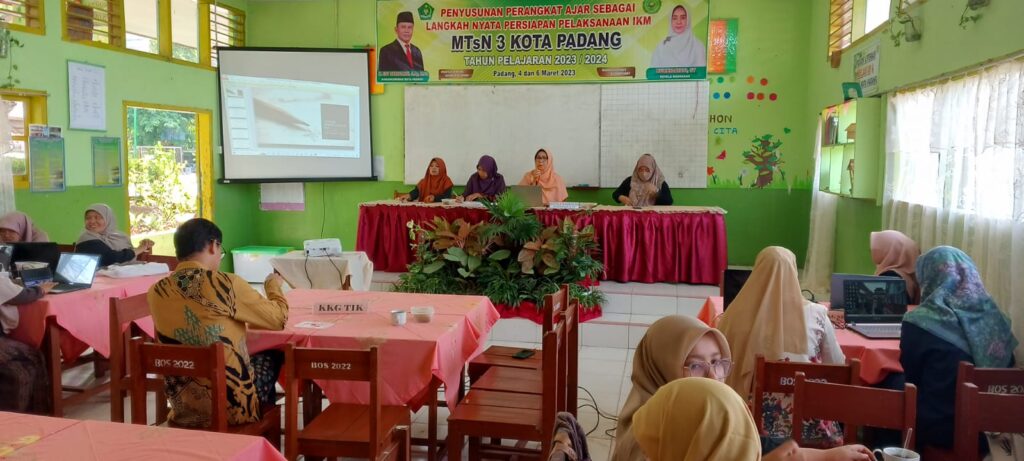 Padang, Humas - Guru MTsN 3 Kota Padang mengikuti pra lokakarya penyusunan ATP dan modul ajar kurikulum merdeka, Sabtu & Senin (04 & 05 Maret 2023).