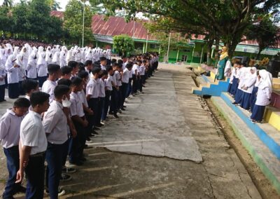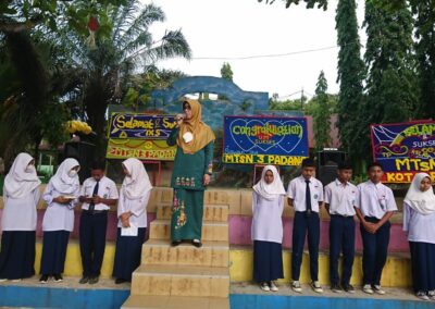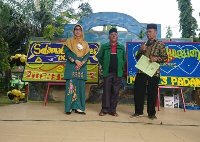 Padang, Humas – Pelepasan peserta didik kelas IX MTsN 3 Kota Padang sebanyak 206 orang berlangsung pada hari Kamis, tanggal 31 Maret 2021 pukul 07.00 WIB di lapangan MTsN 3 Kota Padang oleh Nurhidayati, S.T selaku kepala Madrasah kepada perwakilan orang tua yang diterima oleh ketua Komite Bapak Esrizal, S.Pd dan Bapak Tengku Jamaris. Kegiatan dihadiri oleh seluruh peserta didik kelas IX, pengurus OSIM dan seluruh Dewan Guru di saksikan juga oleh siswa Kelas VII dan siswa Kelas VIII.