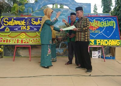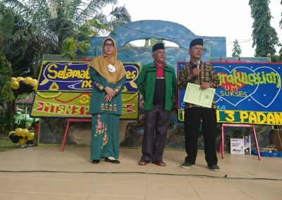Esrizal, S.Pd selaku ketua Komite menyampaikan selamat kepada peserta didik kelas IX dan juga hendaknya bisa nanti mendapatkan sekolah yang lebih baik. Beliau juga mengucapkan terima kasih kepada Ibuk Nurhidayati, S.T selaku kepala madrasah yang telah membimbing peserta didik selama tiga tahun ini, mudah-mudahan menjadi amal untuk kita semuanya. (AA. Foto : AA)