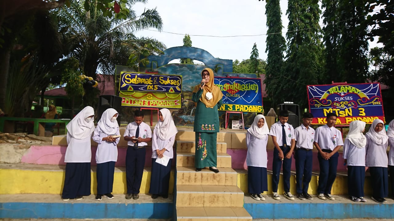 Nurhidayati, S.T selaku kepala Madrasah dalam sambutannya menyampaikan harapan agar seluruh peserta didik senantiasa menjaga dan meningkatkan segala kebiasaan baik yang telah didapatkan di madrasah. Pesan yang paling penting yang disampaikan adalah jangan pernah meninggalkan sholat dan berbuat baik kepada kedua orang tua dan minta maaf sebelum masuk bulan suci Ramadhan 1443 H dan juga sampaikan permohonan maaf dari pihak madrasah dan seluruh Guru MTsN 3 Kota Padang kepada orang tua dirumah.