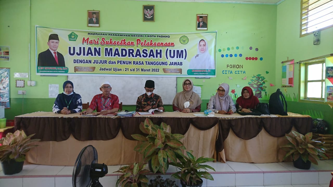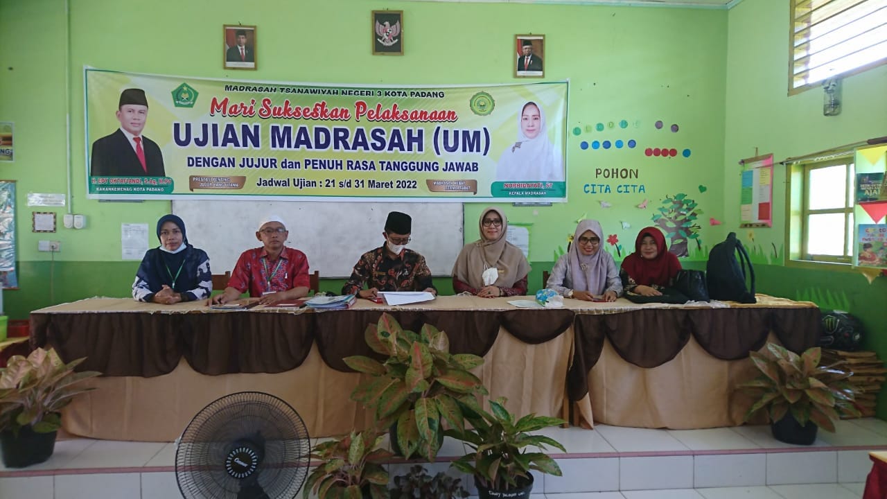 Padang, Humas – MTsN 3 Kota Kota Padang menerima kunjungan Tim Monitoring dan Evaluasi (Monev) Ujian Madrasah (UM) Kementerian Agama Kota Padang tahun pelajaran 2021/2022 pada hari Kamis, tanggal 24 Maret 2022.