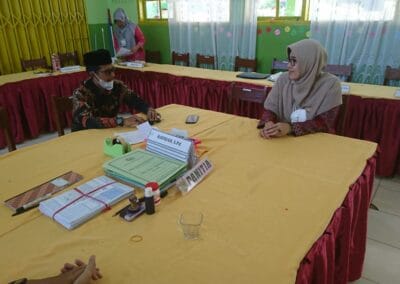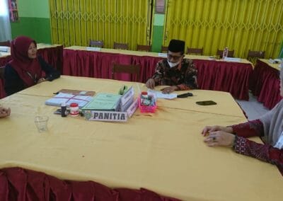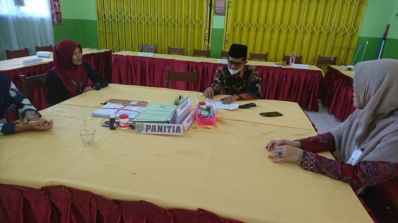 Kasubag TU Zulfahmi, S.Ag sebagai ketua Tim Monev dan Suhaimi, S.Ag serta Nelva Oktasari sebagai anggota tiba di MTsN 3 Kota Padang pukul 11.00 WIB, dan disambut oleh kepala madrasah Nurhidayati, S.T dan semua unsur pimpinan yang juga panitia UM di ruang Panitia Ujian Madrasah.