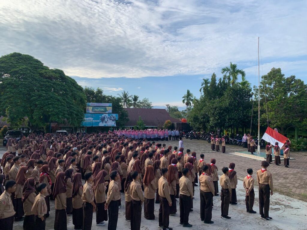 Padang, Humas – Semangat membara dalam menghadapi tantangan pendidikan yang modern, MTsN 3 Kota Padang menggelar upacara Hari Pendidikan Nasional (Hardiknas) pada Kamis (2/5). Acara tersebut dihadiri oleh seluruh siswa dan ASN MTsN 3 Kota Padang dengan penuh hikmat. Kepala madrasah, Nurhidayati, membacakan amanat Hardiknas dari Menteri Pendidikan, Riset, dan Teknologi (Menristek) Nadim Makarim. Dalam amanat tersebut, Nurhidayati menekankan pentingnya gotong royong dalam transformasi pendidikan menuju merdeka belajar.