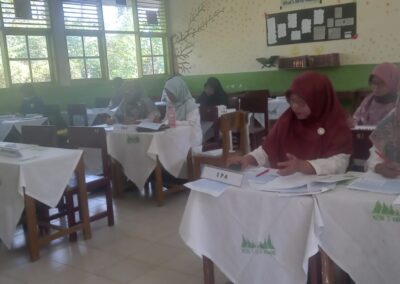 Nurhidayati, S.T selaku kepala madrasah dalam arahannya menyampaikan ucapan terima kasih kepada seluruh guru pemeriksa hasil ujian madrasah dan nantinya memberikan laporan tentang hasil penilaian. Akhirnya kami ucapan terima kasih kepada seluruh warga MTsN 3 Kota Padang yang telah ikut serta dalam mensukseskan Ujian Madrasah tahun pelajaran 2021/2022. (AA. Foto : AA)