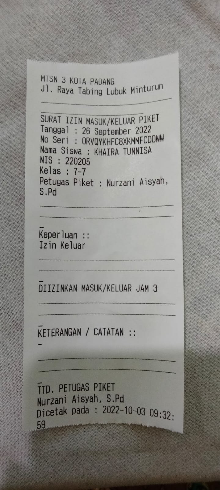Lewat aplikasi ini, izin masuk dan keluar siswa dapat dipantau dan di minimalisasi, karena terdata dan dapat dibaca dengan jelas.