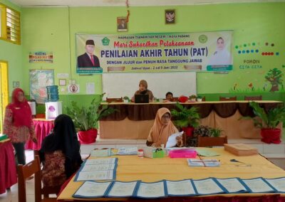 Kepala MTsN 3 Kota Padang, Nurhidayati, S.T juga berpesan, “Pelaksanaan PAT Semester Genap ini adalah salah satu penentu kenaikan kelas yang nantinya akan didukung oleh nilai harian selama pembelajaran berlangsung. Penilaian terhadap siswa tidak hanya berfokus pada pengetahuan dan keterampilan, tetapi juga terhadap sikap para peserta didik. Oleh karena itu, peserta didik harus belajar dengan giat dan tetep menjaga etika.” (AA. Foto : AA)
