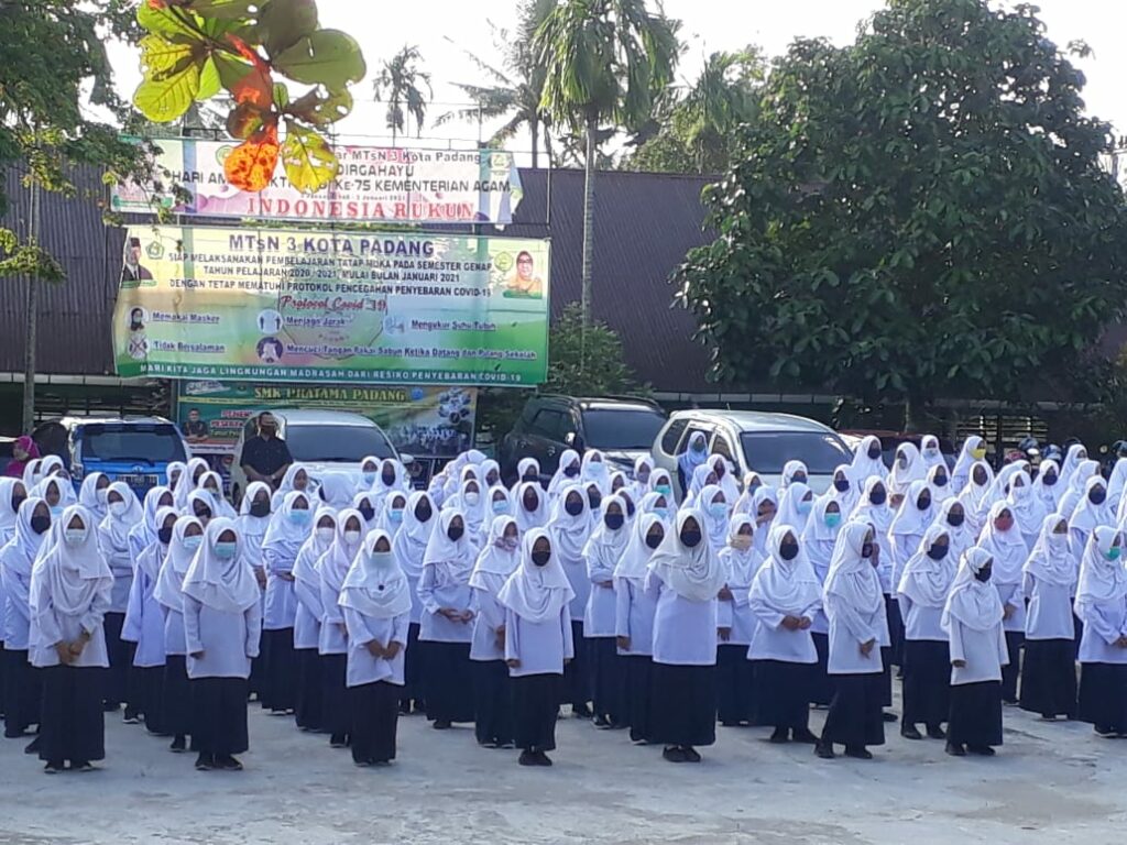 Padang – Kepala Madrasah Nurhidayati pagi ini Selasa 16 Maret 2021 melantik pengurus OSIM MTsN 3 Kota Padang periode 2021/2022. Kegiatan pelantikan pengurus OSIM baru MTsN 3 Kota PadangĀ periode 2021-2021 ditandai dengan penanda tanganan berita acar ketua OSIM yang baru Abdul Kadir Al Habib dengan ketua yang lama Andre Kurniawan yang dilaksanakanĀ di lapangan MTsN 3 Kota Padang.