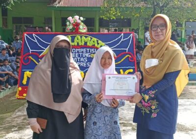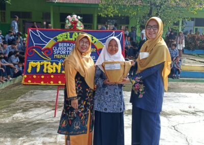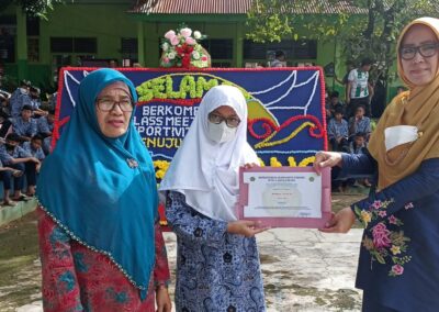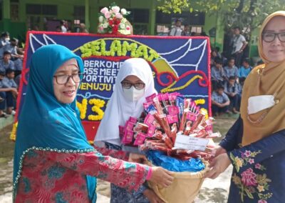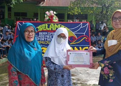 Pengumuman Juara Umum yang ditunggu-tunggu oleh seluruh peserta didik, yang menjadi juara Umum kelas VII adalah Julvita Deby Febioni kelas 7.1 dan juara Umum Kelas VIII adalah Syahidah kelas 8.7, kepada Juara Umum diharapkan bisa menjadi panutan bagi peserta didik yang belum mencapai peringkat terbaik dikelas masing-masing tahun ini. (AA. Foto : AA)