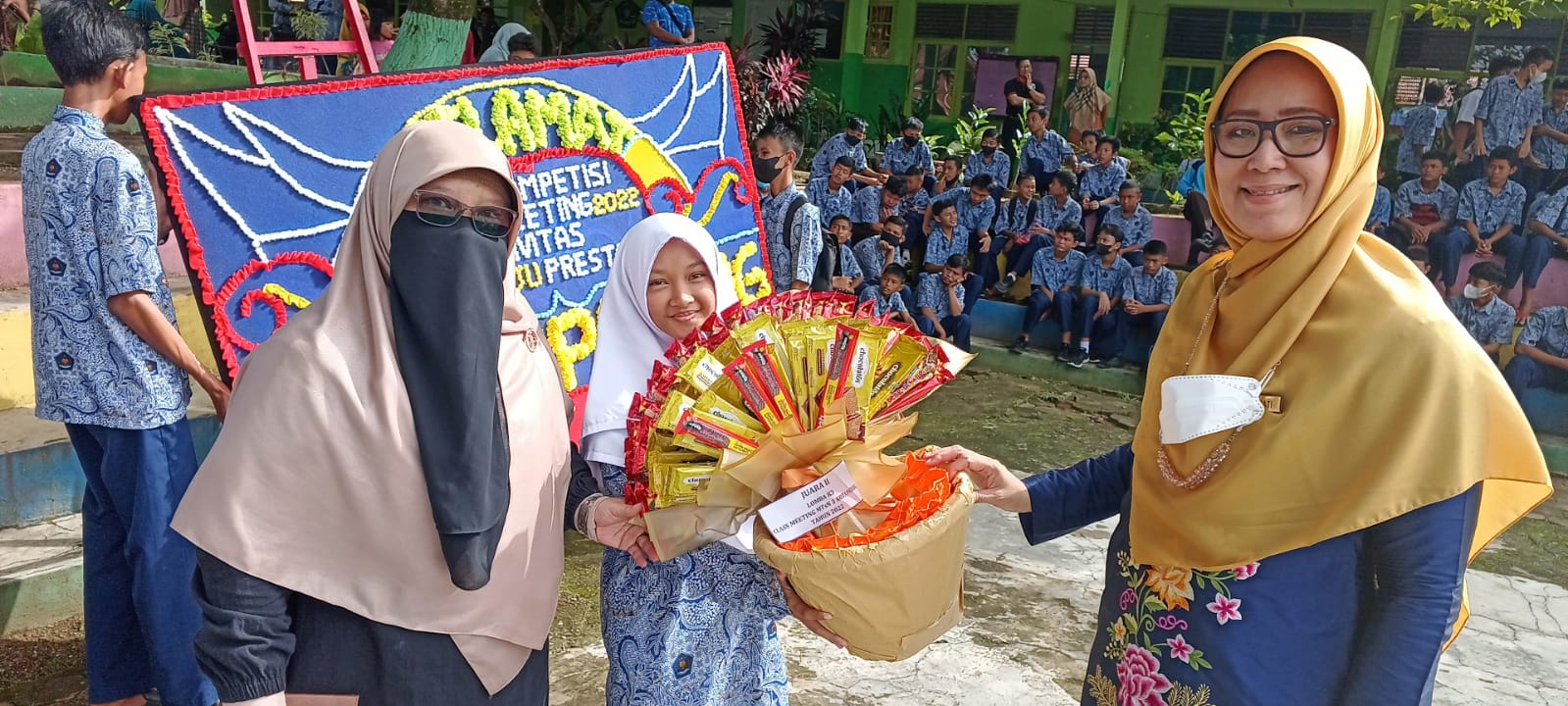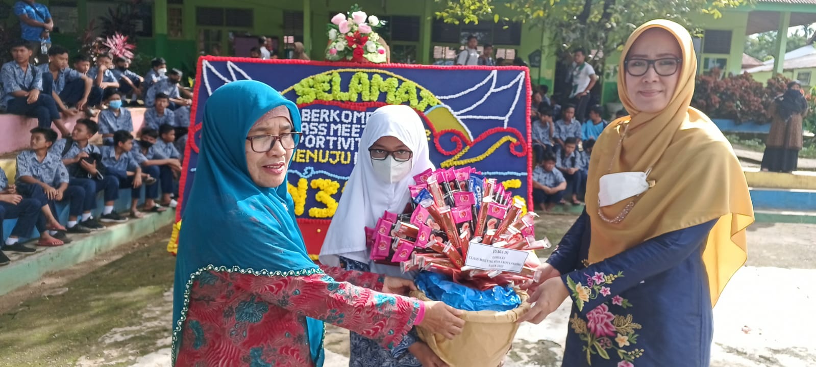 Pengumuman Juara Umum yang ditunggu-tunggu oleh seluruh peserta didik, yang menjadi juara Umum kelas VII adalah Julvita Deby Febioni kelas 7.1 dan juara Umum Kelas VIII adalah Syahidah kelas 8.7, kepada Juara Umum diharapkan bisa menjadi panutan bagi peserta didik yang belum mencapai peringkat terbaik dikelas masing-masing tahun ini. (AA. Foto : AA)