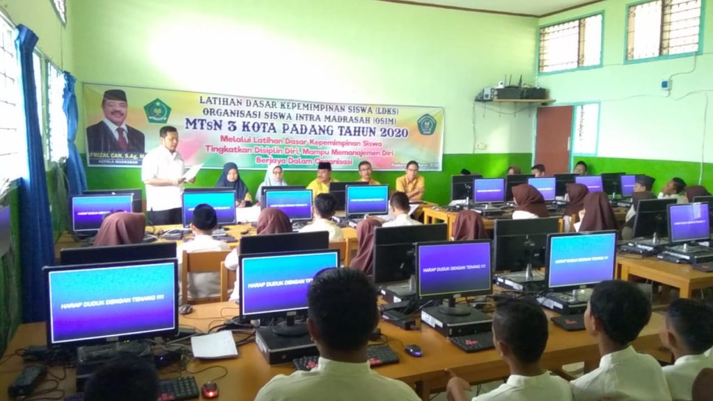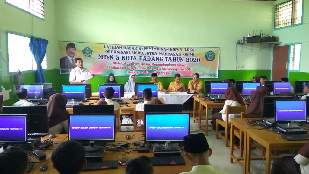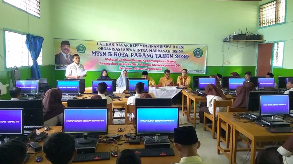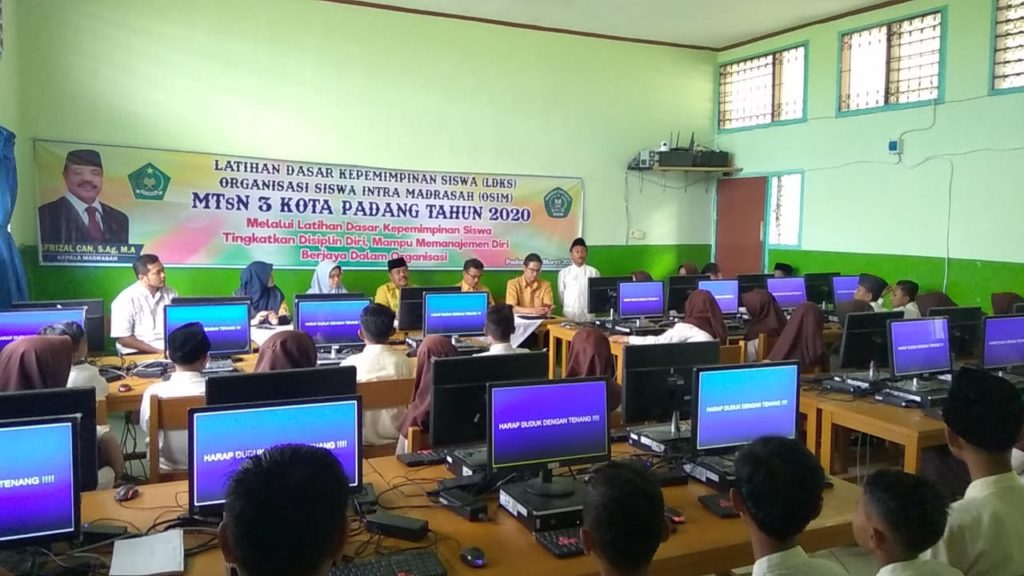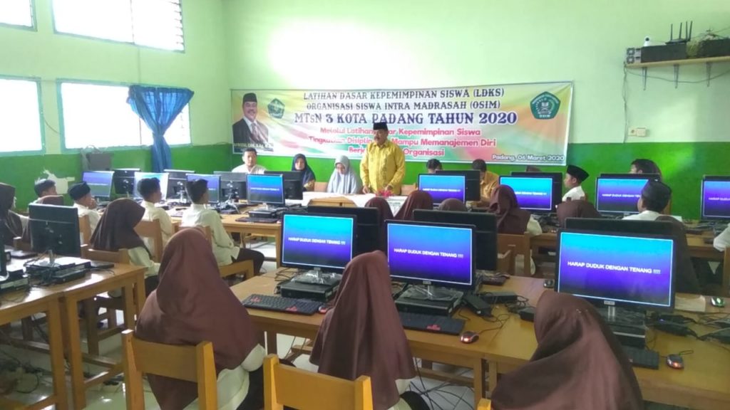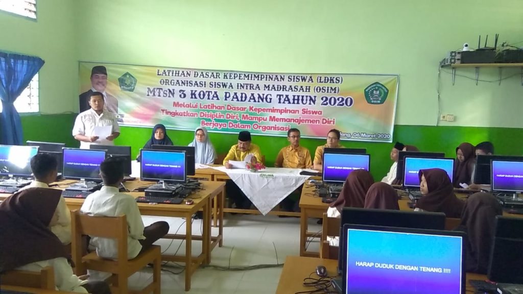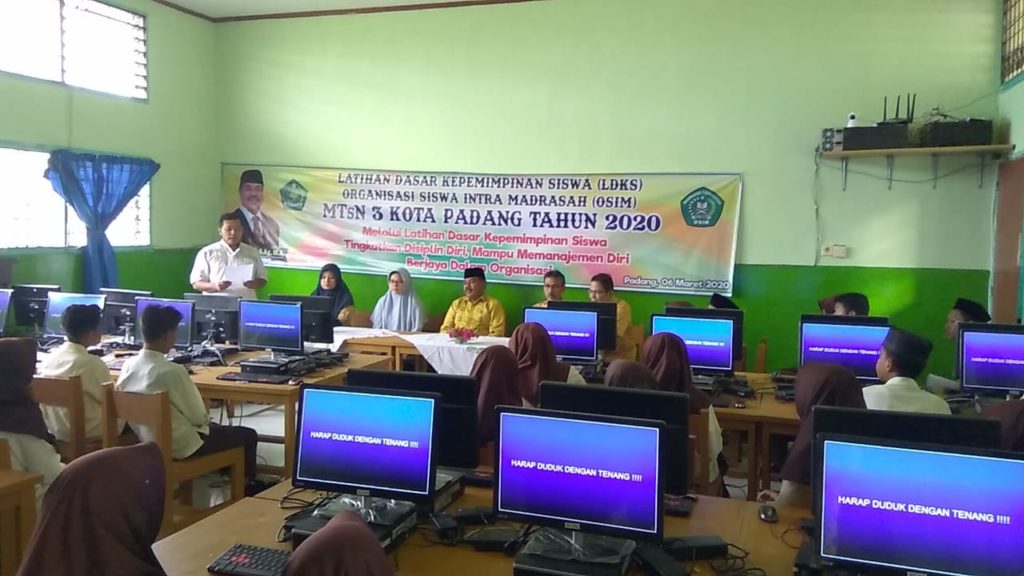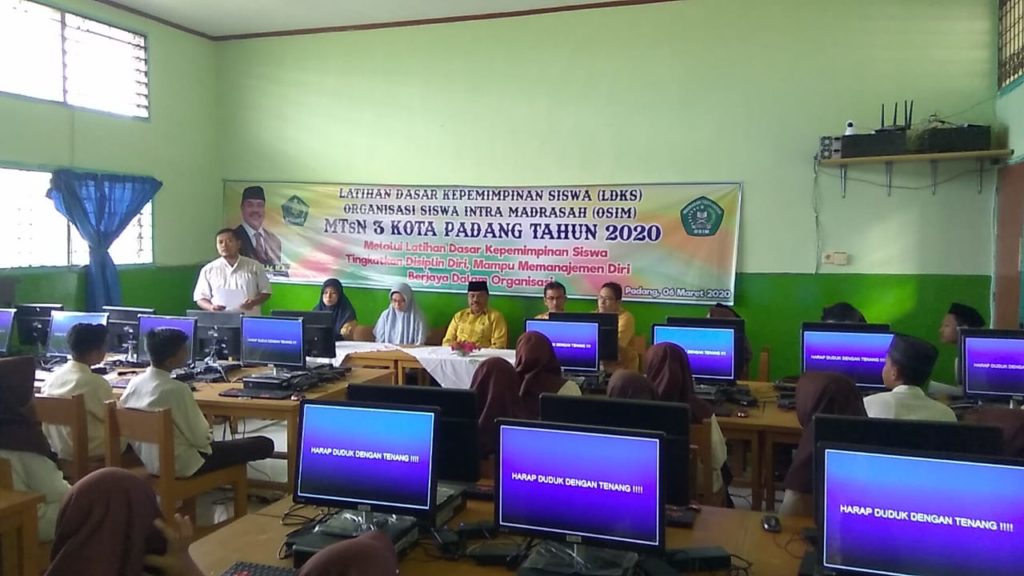 Padang - Jumat, 6 Maret 2020 Kepala MTsN 3 kota Padang bapak Afrizal Can, S.Ag secara resmi membuka Latihan Dasar Kepemimpinan Siswa (LDKS) Organisasi Siswa Intra Madrasah (OSIM) dengan Tema “Melalui Latihan Dasar Kepemimpinan Siswa Tingkatkan Disiplin Diri, Mampu memanajemen diri dan Berjaya dalam berorganisasi”. Ketua pelaksana, Elpi Yanti,S.Pd., mengatakan bahwa kegiatan ini dilaksanakan selama 2 (dua) hari, Juma’t dan Sabtu tanggal 6-7 Maret 2020 yang diikuti oleh 42 orang siswa yang merupakan pengurus OSIM MTsN 3 Kota Padang periode 2020-2021.