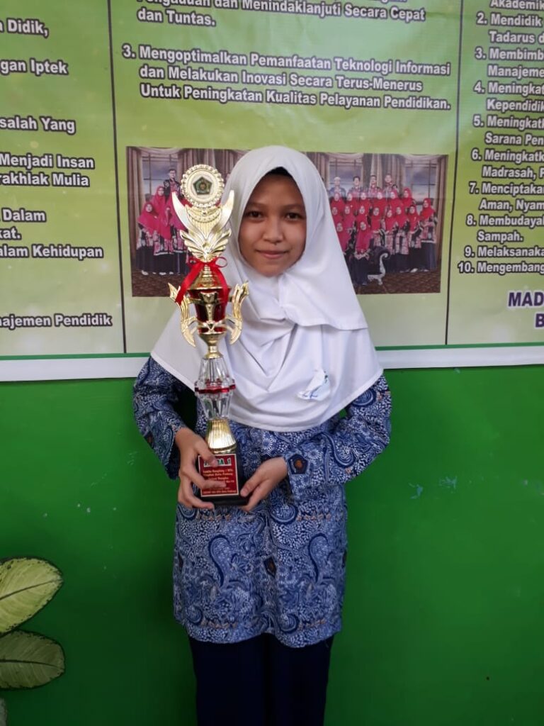 - Aulia Humaira kelas 9-2 yang meraih Juara 1 pada lomba Rangking 1 SKI yang dibina oleh Zaina Rahmawati, S.Pd.I dan Ermanelli, S.Pd.I