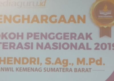 Atas dukungan Kakanwil Kemenag dalam satu tahun ini menunjukkan hasil yang luar biasa. CEO MEDIA GURU memberikan penghargaan kepada Ka Kanwil Kemenag Sumbar langsung diterima oleh Bapak H Hendri, SAg. MPd. Selamat pak atas penghargaan yang bapak terima. Terimakasih atas dukungan bapak. Semoga bapak selalu sehat dan sukses selalu aamiin ya rabbal’alamiin.