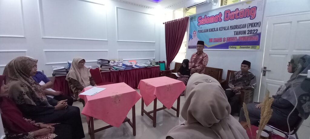 Padang, Humas – Penilaian Kinerja Kepala Madrasah (PKKM) merupakan proses pengumpulan, pengolahan, analisis, dan interpretasi data yang dikerjakan oleh kepala madrasah pada setiap indikator pemenuhan standar. Terkait dengan kegiatan penilaian kinerja kepala madrasah tersebut, Ditjen Pendidikan Islam melalui Direktorat Guru dan Tenaga pendidikan Madrasah menyusun petunjuk teknis Penilaian Kinerja Kepala Madrasah yang kemudian ditetapkan melalui SK Ditjen Pendis Nomor 1111 tahun 2019.